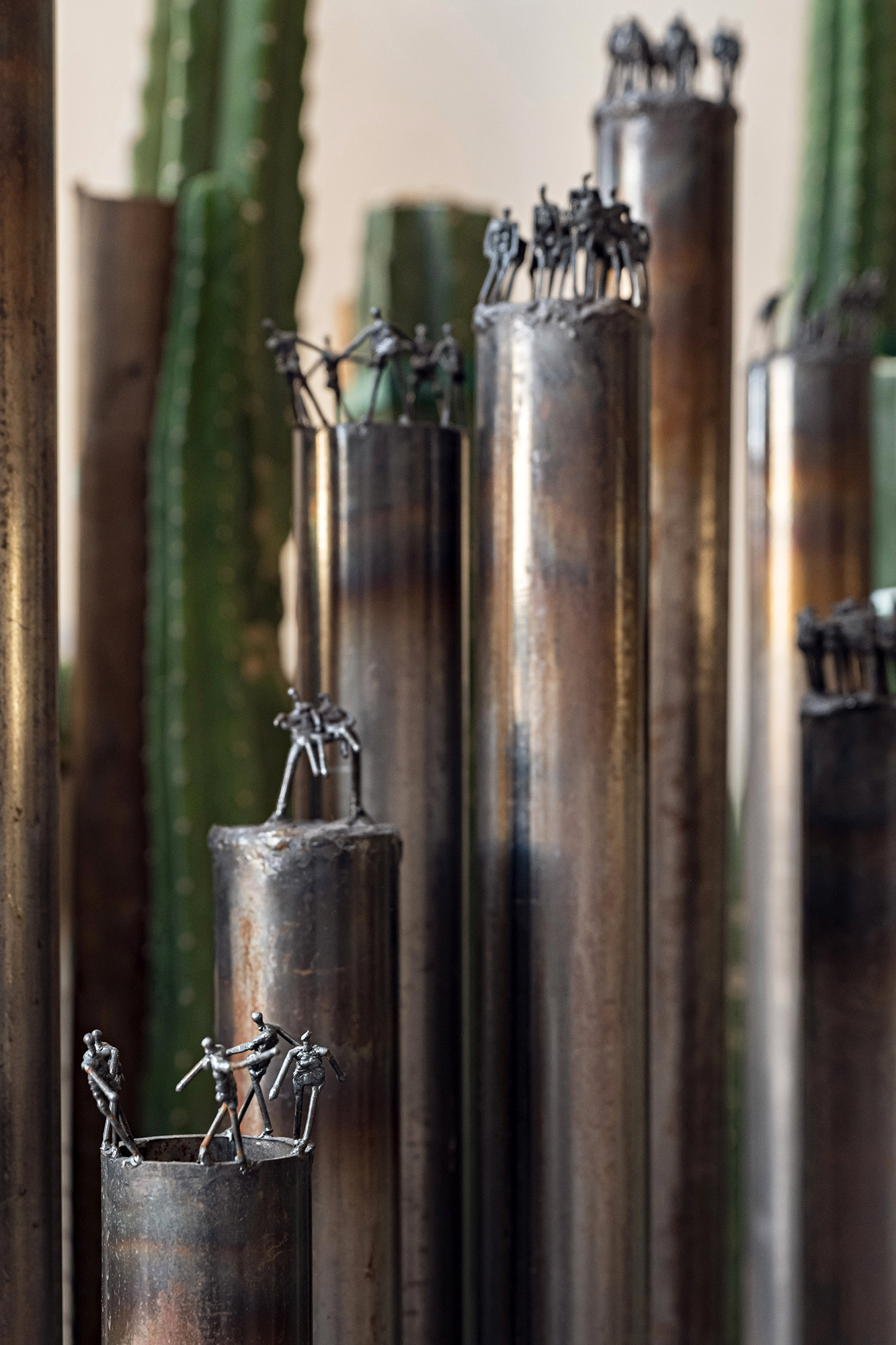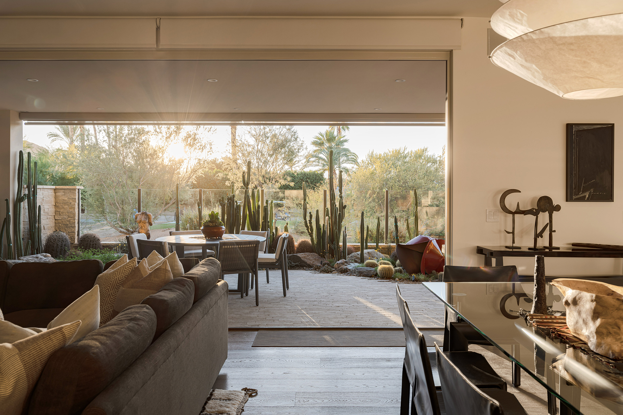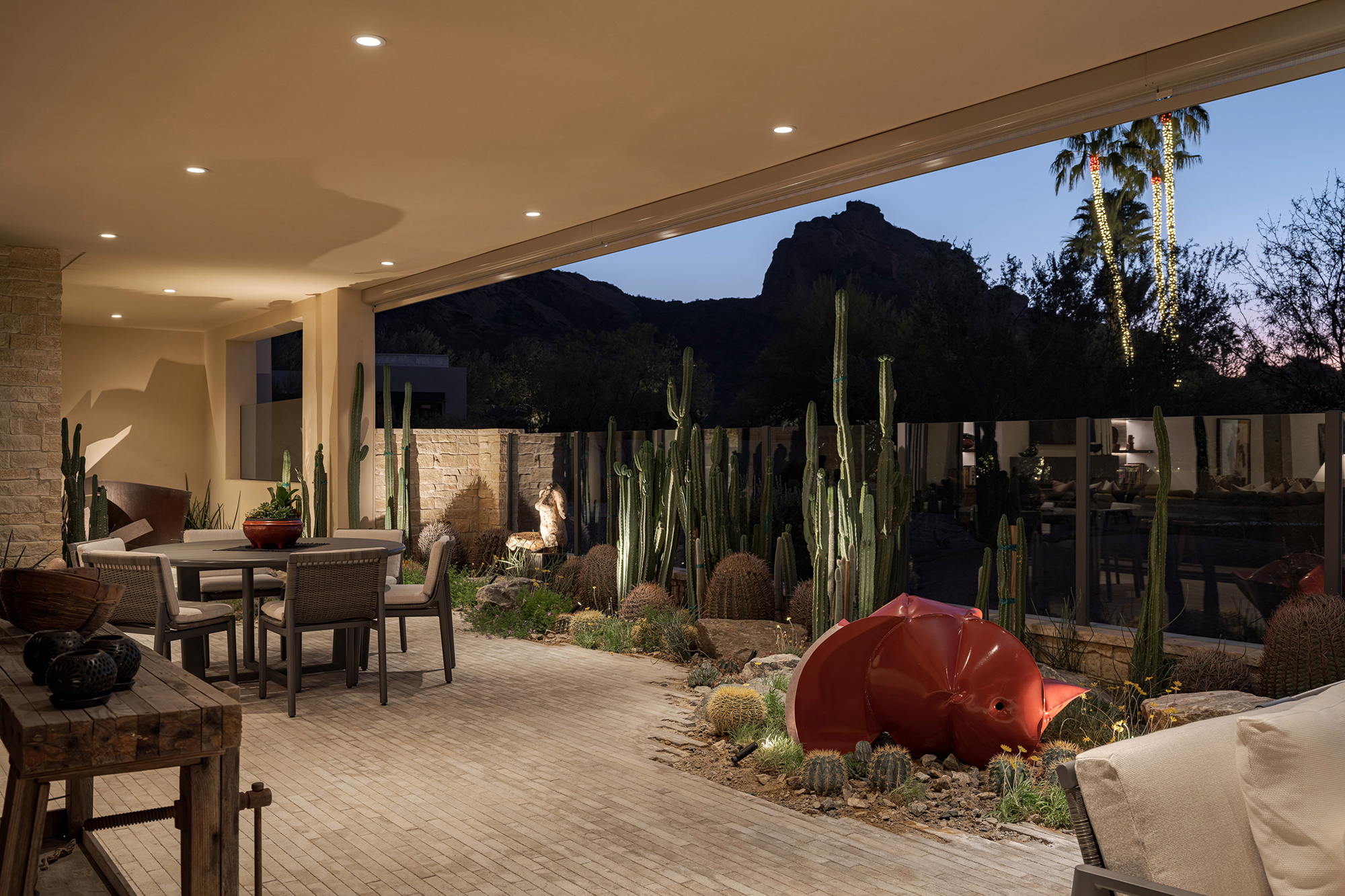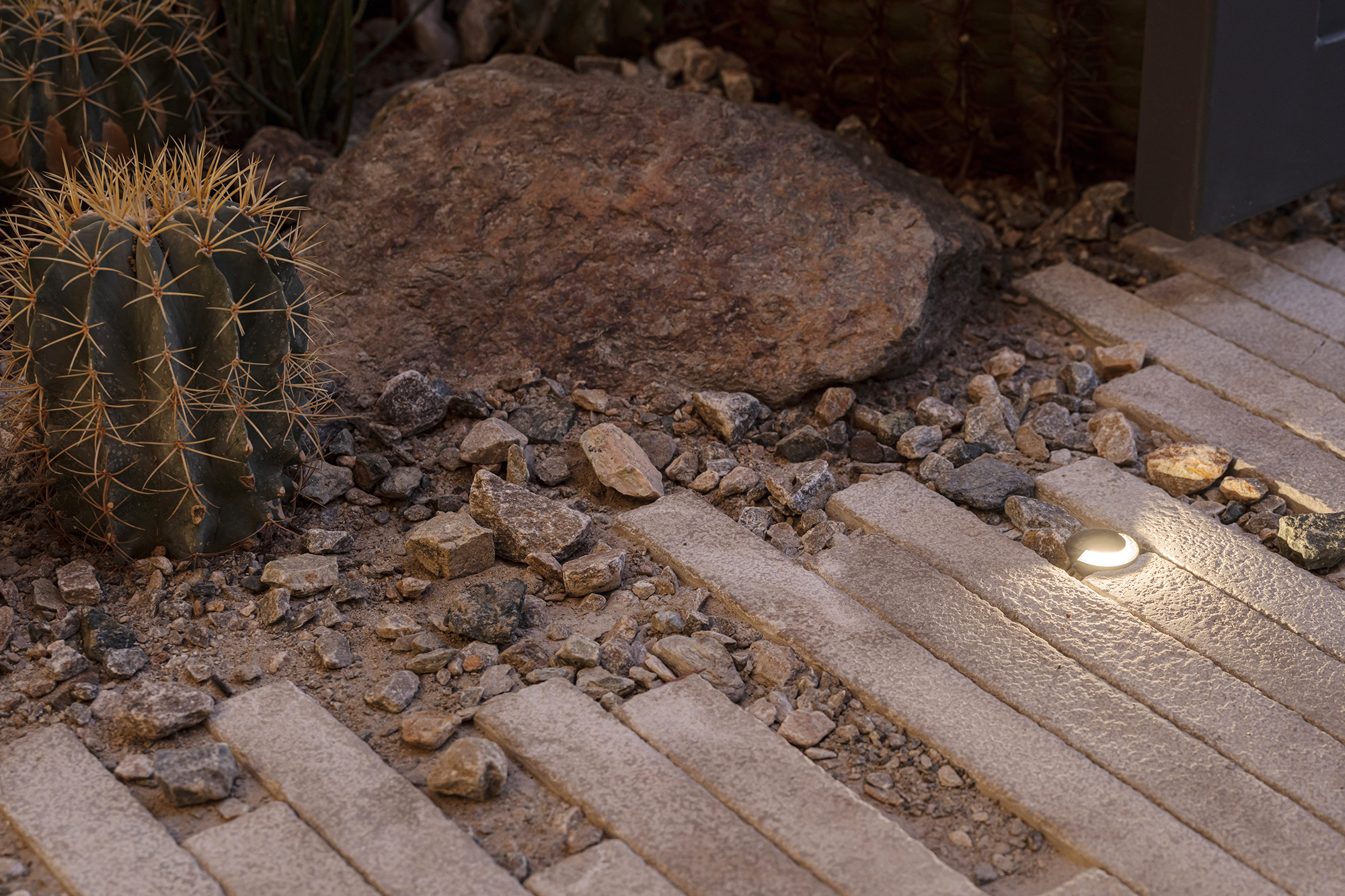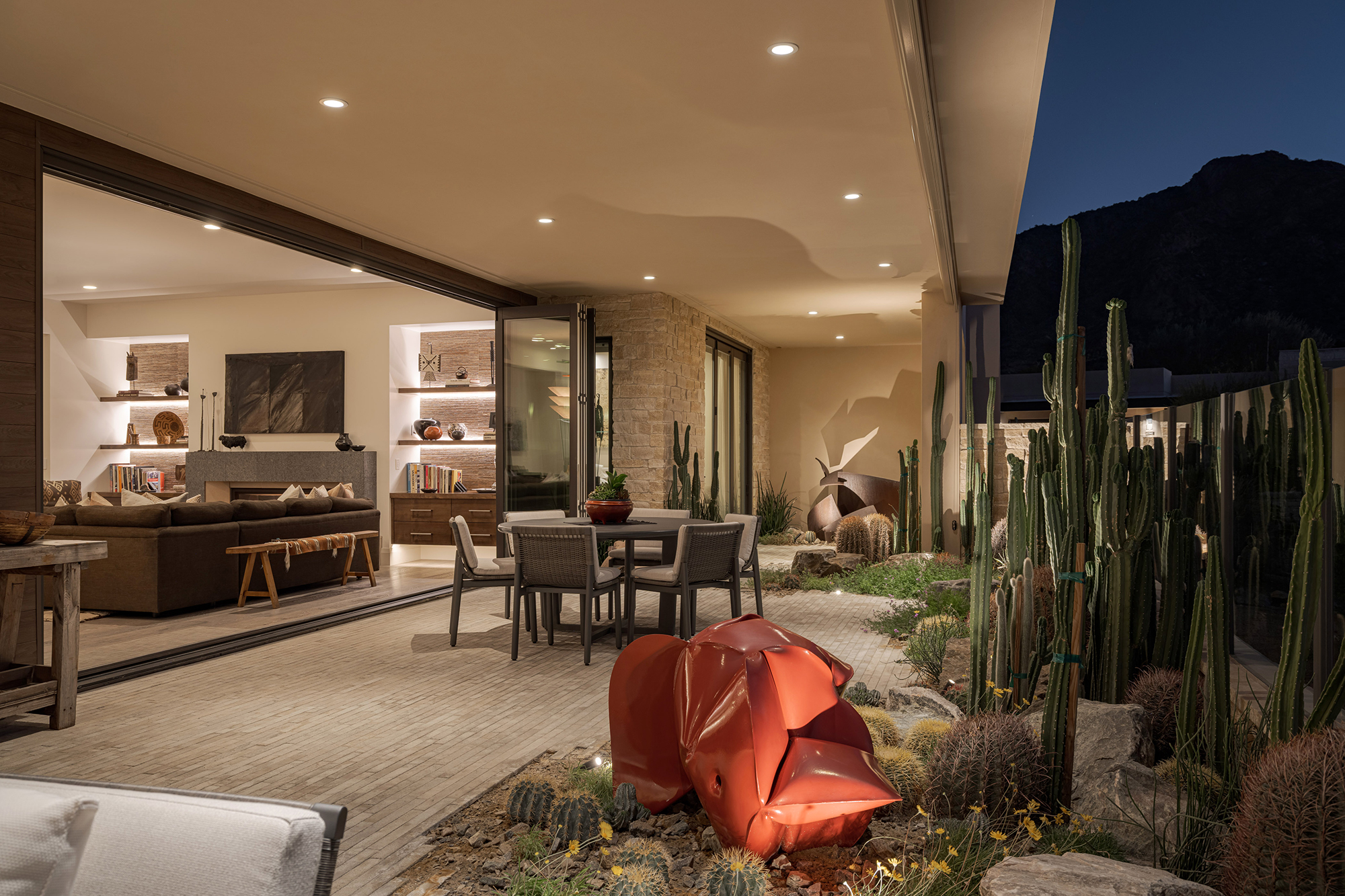 Layered arrangements of columnar cacti and newly commissioned works choreograph movement through the space, offering subtle screening and moments of pause. Carefully placed boulders anchor each piece, creating enduring focal points that echo the timeless terrain of the Sonoran Desert.